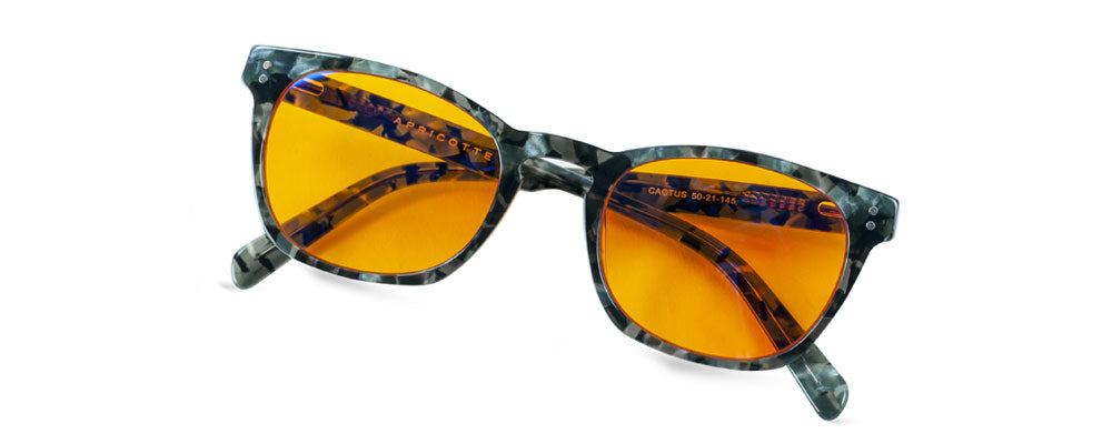 - Apricotte biohacker lenses: Made of organic resin CR-39. They block all frequencies of blue light and most green light, up to 550 nm.